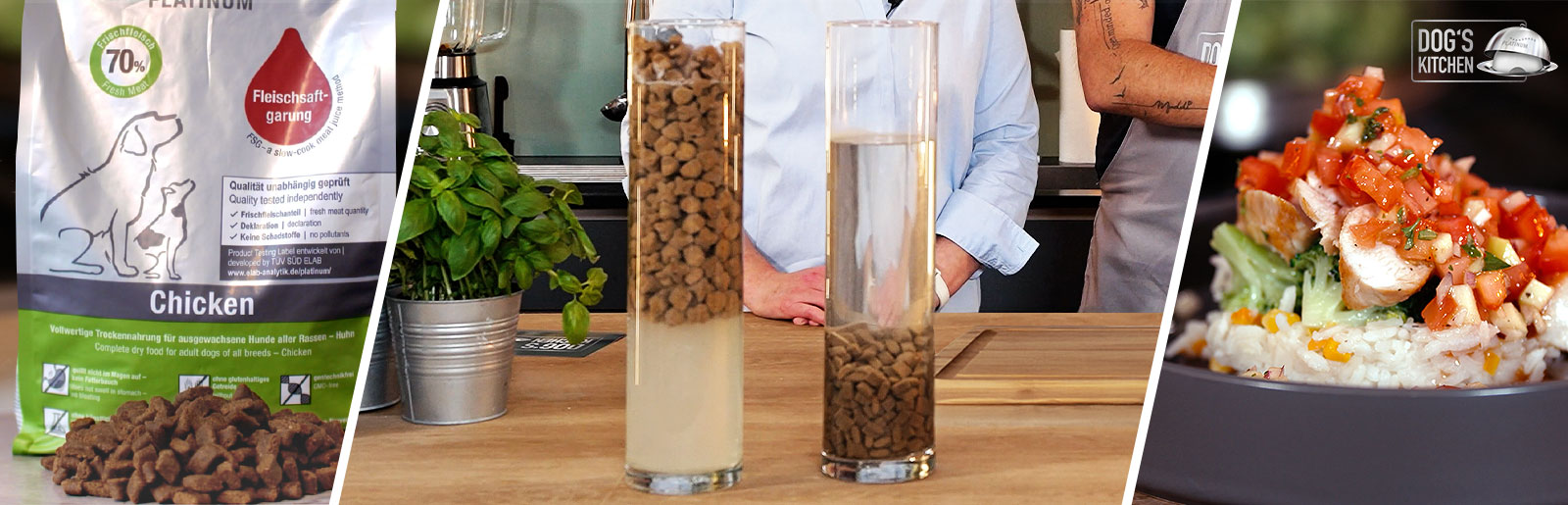 Wie wirkt sich das Herstellungsverfahren von Trockenfutter auf das Verhalten im Hundemagen aus? In der ersten Folge von Dog’s Kitchen gehen Birgit und Mike diesem Thema auf den Grund. Gemeinsam mit dem Hund-Mensch-Team Sandra & Mila zeigen sie in einem anschaulichen Quelltest, wie sich extrudiertes Trockenfutter und Trockennahrung aus Fleischsaftgarung im direkten Vergleich verhalten.
