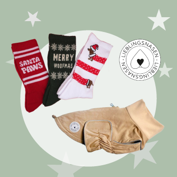 Gagne un ensemble d'hiver de Lieblingsnasen ! Profite du manteau extérieur fonctionnel 2.0 pour ton compagnon à quatre pattes et d'un ensemble de chaussettes de Noël limitées pour toi – parfait pour des aventures hivernales à deux !