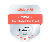 - au moins 82 % de viande fraîche (pas de farine de viande ni de farine animale)