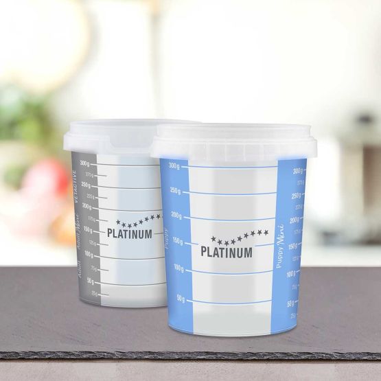 Vanwege het hoge restvocht gehalte in onze droge voeding, raden wij aan de maatbeker niet in de geopende zak te bewaren.
